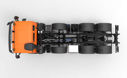 Cargas máximas de 10 toneladas gracias a ejes y ejes motor delanteros reforzados para aplicaciones off-road muy intensivas (rutas con pendientes o con equipos pesados en la parte delantera).