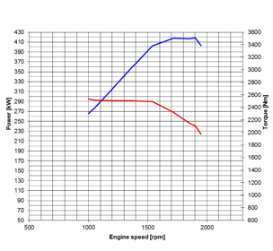 - Potencia máxima: Hasta 560 CV (412 kW) a 1900 rpm