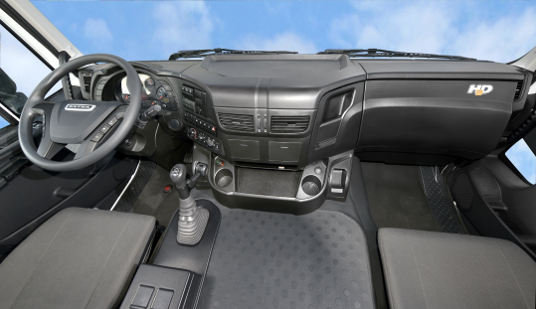 El interior de la cabina se ha diseñado y optimizado especialmente para ofrecer una excelente ergonomía y comodidad, hacer que la conducción sea relajante y, al mismo tiempo, garantizar una gran funcionalidad. El tablero de instrumentos envuelve al conductor y facilita y asegura el uso de los mandos incluso en las condiciones de trabajo más difíciles y complicadas.