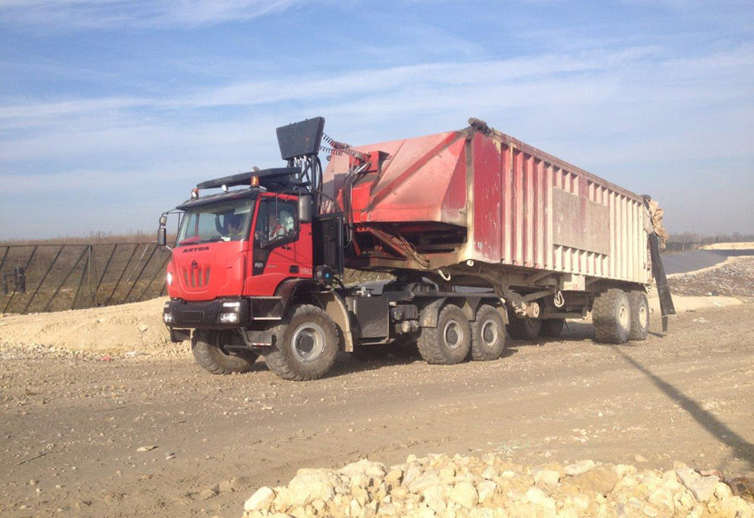 Los vertederos requieren vehículos especiales para la excavación, el vertido de residuos y su recuperación. Para trabajar con eficiencia y en condiciones de seguridad total, los vehículos han de montar ruedas sobredimensionadas y garantizar una gran distancia hasta el suelo, para moverse sobre suelos irregulares.
