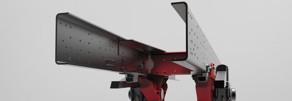 Doble larguero de acero especial de alta resistencia con límite de elasticidad de 530 MPa con secciones grandes para garantizar la facilidad de equipamiento y rigidez torsional muy elevada (hasta 300 kNm), y una gran estabilidad en situaciones extremas.