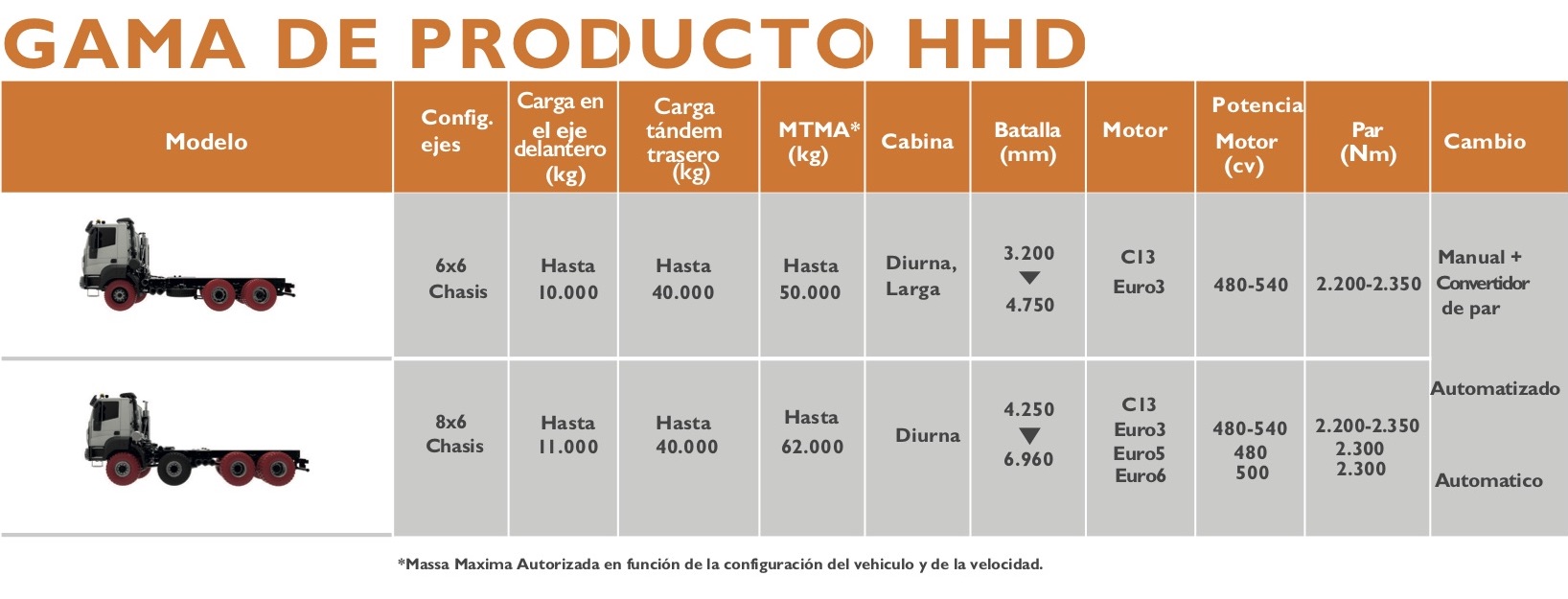 • Distancias entre ejes extralargas para equipos especiales